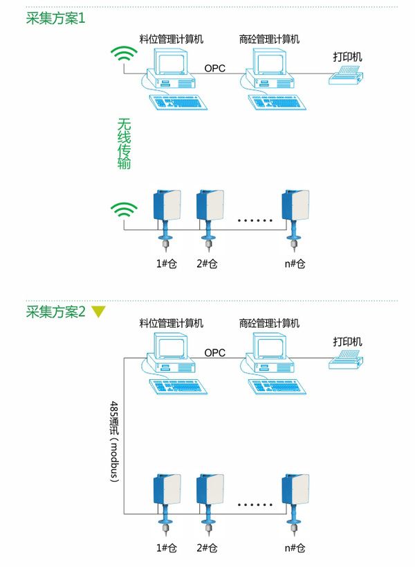 系統(tǒng)由重錘式料位計、阻旋料位開關、倉底報警終端、無限數(shù)據傳輸單元、磅房顯示畫面等組成、解決罐車上料(氣力輸送)在倉臨近滿倉時的料位實時報警,彌補重錘式料位計在上料時不允許探測的缺陷,重錘式料位計與阻旋料位開關的結合,構成了完美的料位測量及實時報警系統(tǒng)。