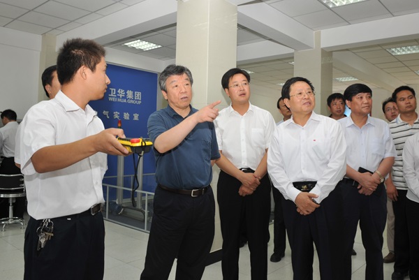 衛(wèi)華集團(tuán)董事長(zhǎng)、總裁韓憲保陪同盧展工一行參觀了集團(tuán)技術(shù)檢驗(yàn)測(cè)試中心和和電器實(shí)驗(yàn)室。在電器實(shí)驗(yàn)室,盧展工饒有興趣地觀看了智能門(mén)式起重機(jī)、遠(yuǎn)程控制系統(tǒng)和帶載模型演示實(shí)驗(yàn),并詳細(xì)詢問(wèn)了我集團(tuán)產(chǎn)品的技術(shù)水平、應(yīng)用領(lǐng)域和市場(chǎng)情況。盧展工說(shuō),起重機(jī)最核心的是自動(dòng)控制部分,你們的產(chǎn)品在國(guó)內(nèi)具有地域優(yōu)勢(shì)和價(jià)格優(yōu)勢(shì),要把握好這些有利條件,繼續(xù)加強(qiáng)研發(fā),掌握核心技術(shù),才能有持續(xù)發(fā)展的動(dòng)力。